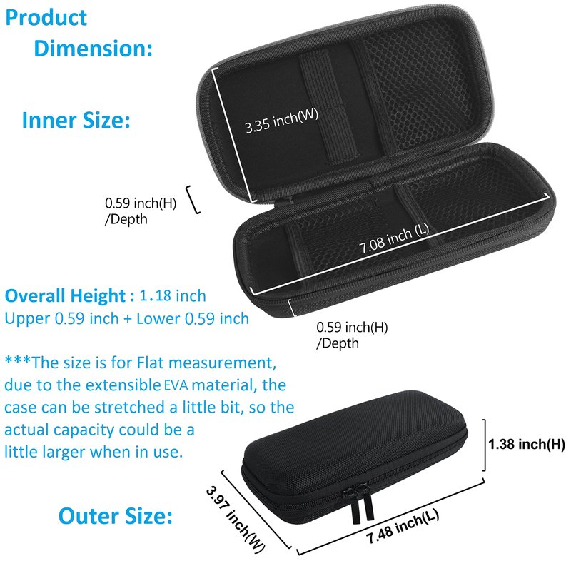 1.Please read the size details on advertised pictures carefully before your purchasing.2.Please be aware of the size of your Power Bank, Cell Phone, External Hard Driver etc. before you place order to avoid mismatched size of carrying case.