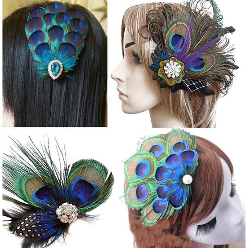 Women Bohemian Peacock Feather Hair Clip Hair P...