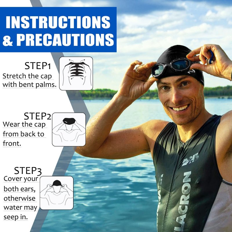 - đŠăUNISEX FOR SHORT/LONG HAIRăCreated with great elasticity and large room, OPOM silicone swim cap is flexible enough to fit most size heads including men, women, adults with short or long hair. It can accommodate and protect your hair from pool water, keep your hair lock secure and tangle when swimming!