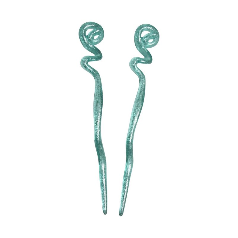 - PRETTY DESIGN. The hair sticks are made of a see through plastic with glitter inside. There stick comes to a twirl at the top.