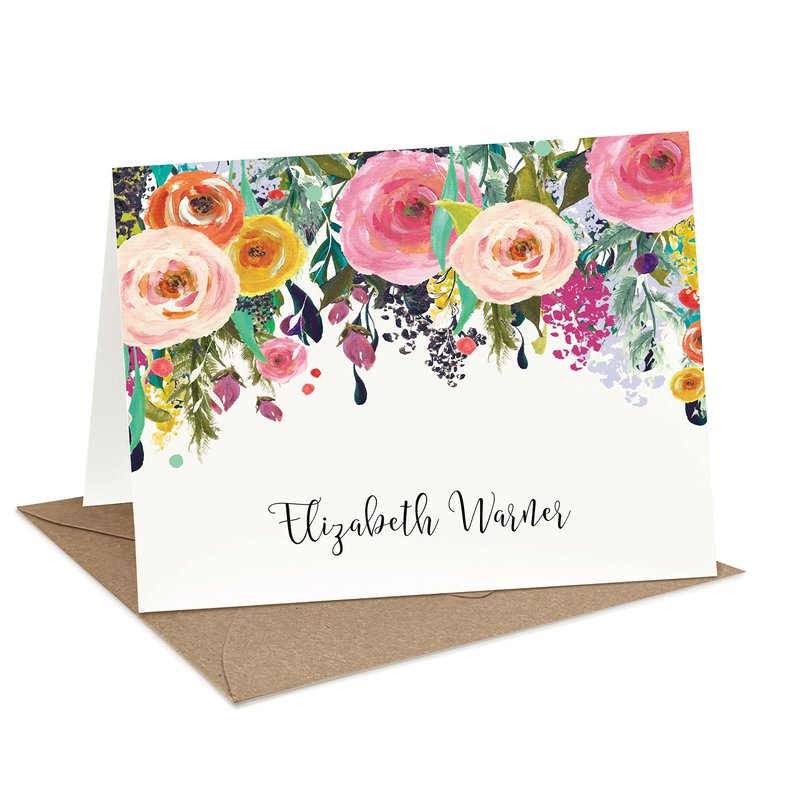 Womens Personalized Folded Stationary Set, Custom Fold, Floral Thank You Card, Rustic Note Cards for Women Stationery Gift, MultiFlower Fold