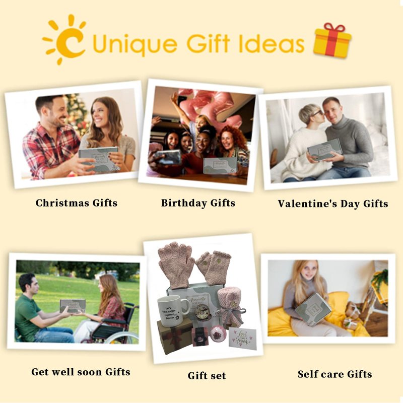 The spa gift set is not only perfect for pampering oneself but also an ideal birthday gift for moms, daughters, sisters, best friends, aunts, grandmothers, wives, colleagues, and more. Every item in the package is selected carefully to surprise a women.Whether it's a spa day, a vacation, or any occasion that calls for relaxation, it's the perfect choice. This unique creative idea perfectly conveys your sentiments, bringing her a day filled with love and surprises.