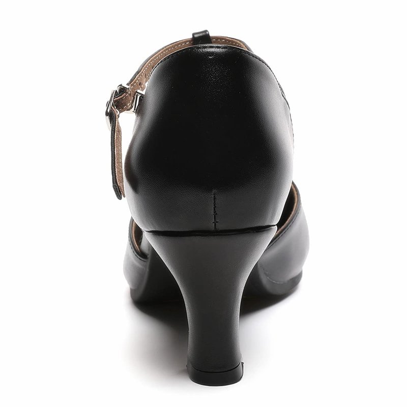 Women's T-Strap Latin Salsa Dance Heels Non-Slip Ballroom Character Shoes Wedding Prom Pumps (8 / Black)