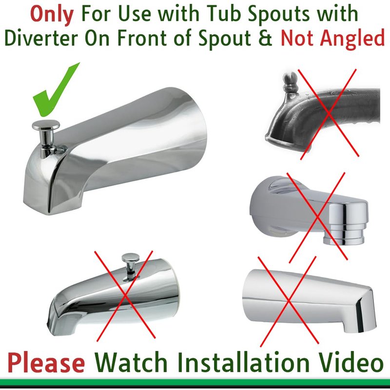- YOU MUST INSTALL THE SHOWER SHUT OFF VALVE. If you do not water will flow to your shower head. PLEASE REFERENCE THE QUALIFICATION SLIDE (SLIDE #4) before purchase. You must determine if this kit will fit your bathtub spout.