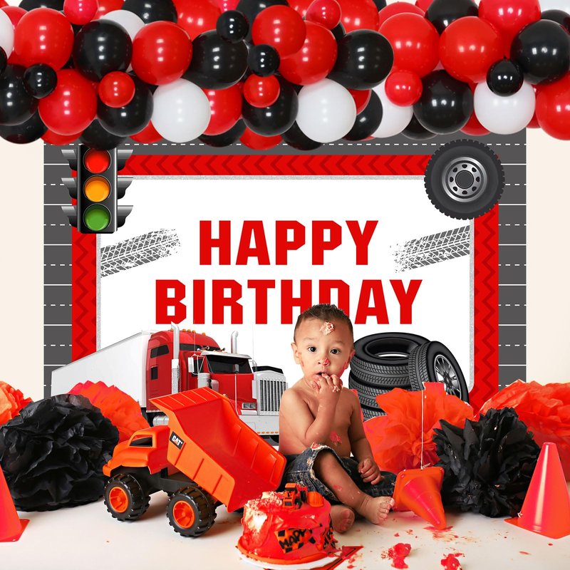 - Happy birthday backdrop: We have specially designed the backdrop pattern, which holds great significance for truck enthusiasts with its white and red colors. Additionally, we have added wheels to enhance our semi truck party experience. Let's capture unforgettable moments in the world of trucks together!