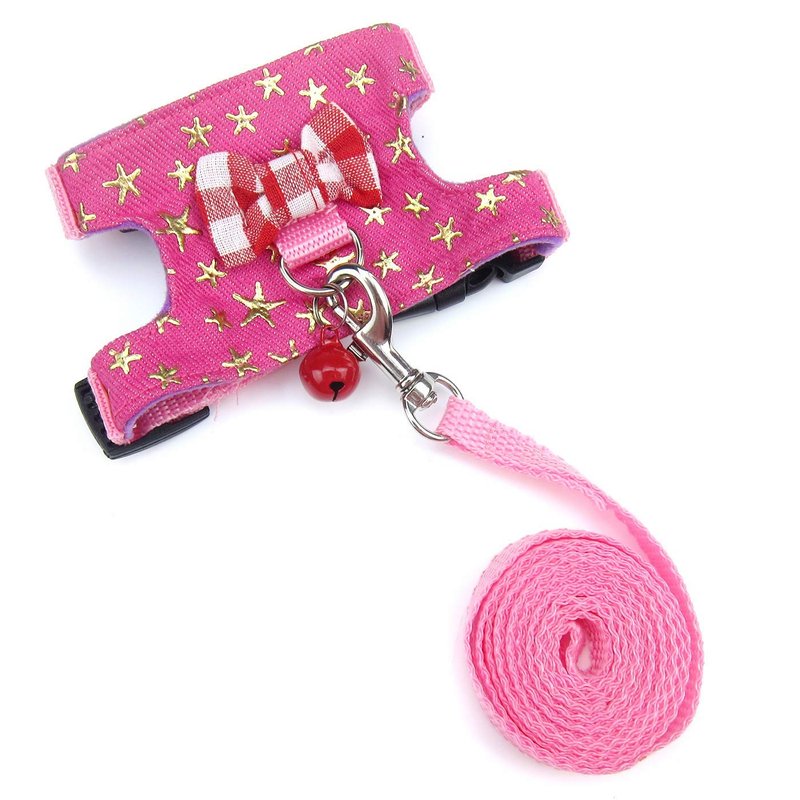 Wontee Small Pet Harness Vest and Leash Set with Bowknot and Bell Decor for Gerbil Guinea Pig Squirrel Kitten Outdoor Walking (S, Pink Star)