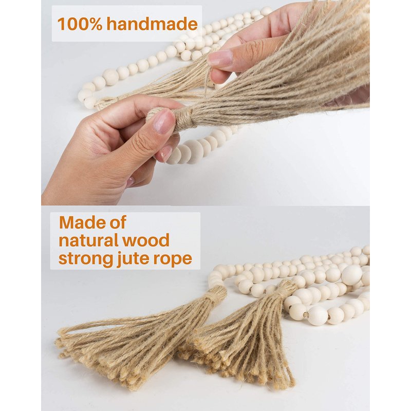 - MATERIAL: wood bead garland with tassels is made of natural solid wood beads and strong jute rope which will bring your peace
