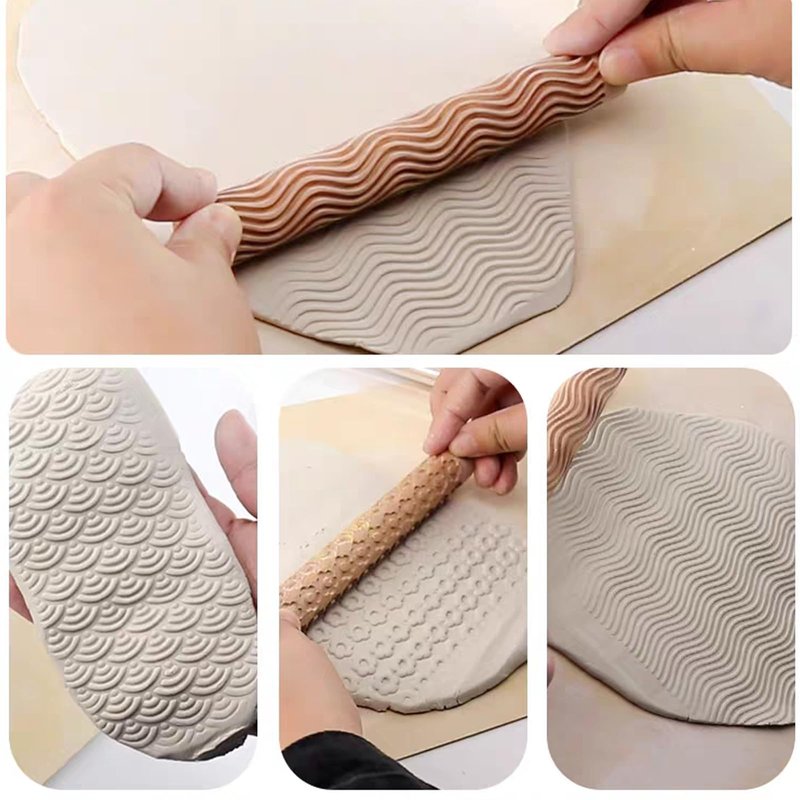 6 x clay texture roller wooden
