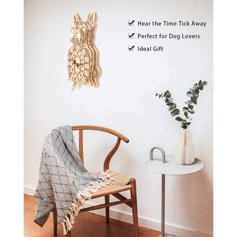 Wooden 3D Puzzles for Adults: Mechanical Bulldog Clock Model - Christmas-Themed Wooden Clock Kits to Build with Wall Clock Pendulum