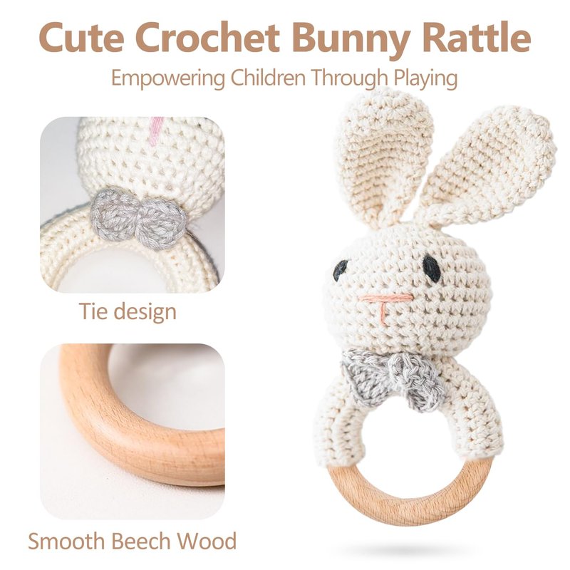 - 🎁【Safe and Durable Material】This wooden baby rattle is made of natural beech wood and handmade crochet plush. BPA free, no burrs on the surface, safe and durable materials can give your baby longer companionship!
