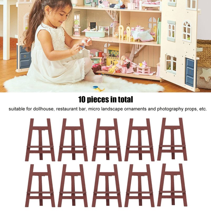 Wooden Dollhouse Accessories, Dollhouse Miniatures, 10 Pcs Dollhouse Easel Detail Design Sturdy Pinewood Multi Purpose Miniature Painting Easel for 1:12 1:6 Scale