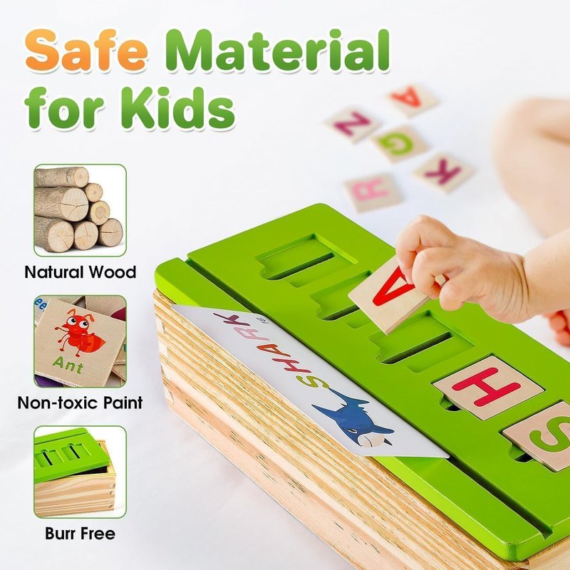 Wooden Educational Toys for Toddlers 3 4 5: Montessori Sorting Toys for 3-5 Years Old Kids - Spelling, Cognition & Matching Game for Preschool Learning Activities - Birthday Gifts for baby Boy Girl