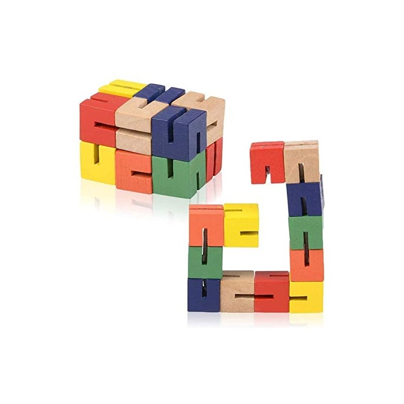 Wooden Flexible Fidget Mini Twist Cube Puzzles - 12 Pack - Stretchable 3D Puzzles Wood Twist Blocks for Anxiety Fidgeting or Party Favors