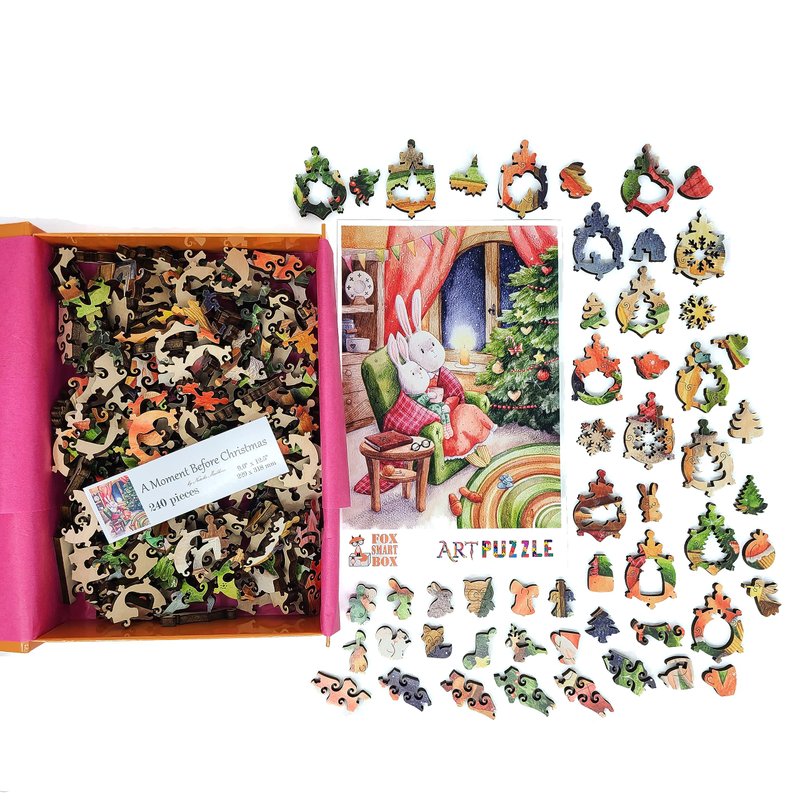 Wooden Jigsаw Puzzle for Adults - Uniquely Shaped Pieces - Made in The USA by FoxSmartBox - 240 Pieces - A Moment Before Christmas