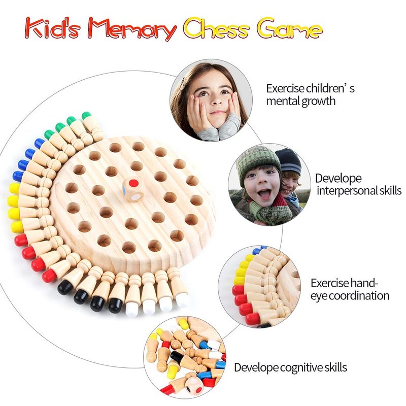 - SAFE MATERIAL: Our mmemory chess is made of safe wooden material and non-toxic water paint, allow you to use with reassurance, and does't hurt kids’ hands easily. (Product size: 17.5×17.5×5.5cm/6.88x6.88x2.16inch)