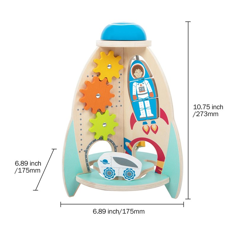 - Activity Cube: Our rocket activity cube Includes shape matching, and rotating gear. Compared with normal square shapes, unique rocket shape is more attractive and it takes babies' thoughts to the mysterious space.