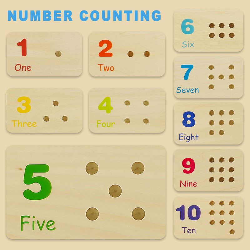- 【Montessori Counting Toys of Peg Board】A child's potential for learning is greatest when provided with tactile, multisensory tools. Counting peg board improves kids' ability of number learning, learning color, recognizing the written numerical symbols visual perception skills, 1 to 1 correspondence, place value manipulatives, and fine motor skills for 3 4 5 years old.