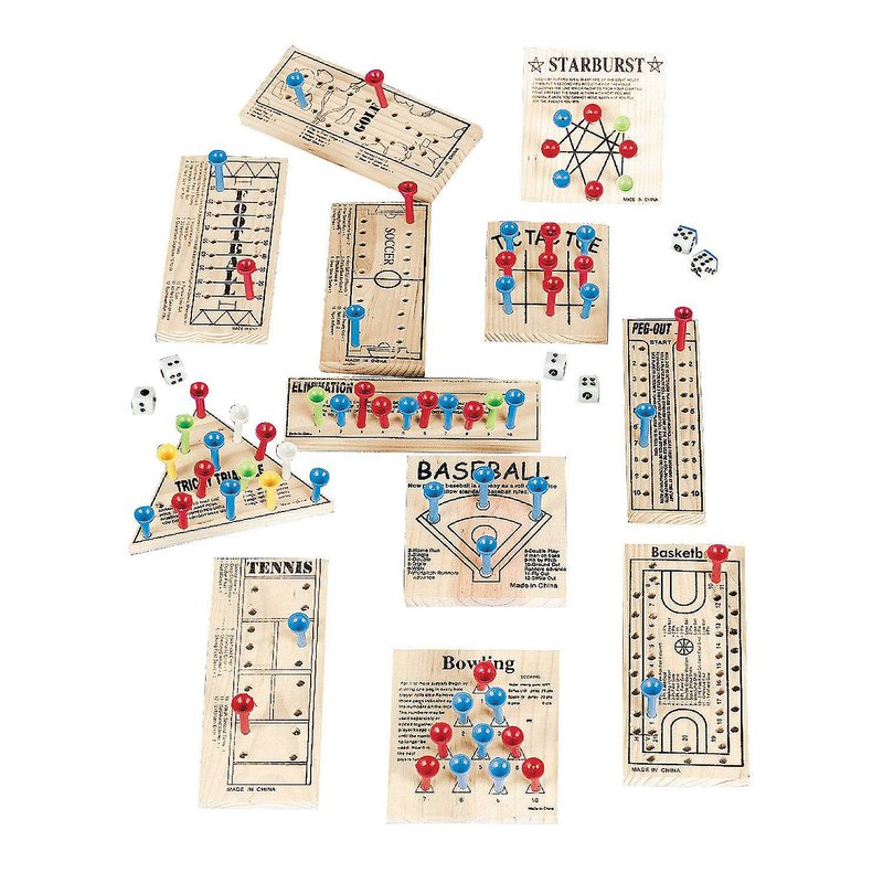 Wooden Peg Board Game Variety Pack - Set of 12 - Variety of Old School and Old Fashioned Games