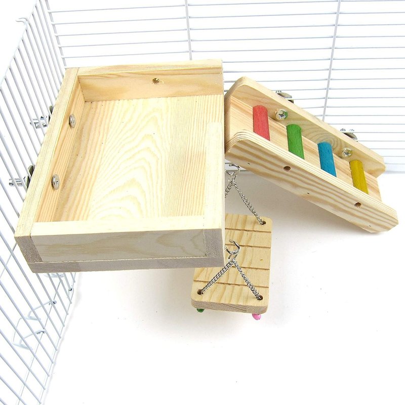 - 🐹PERFECT SET & SIZE: This natural wood toy set come with a resting platform, a ladder and a swing, and available in two sizes, ladder and swing in two size sets are the same size, ladder 7* 1* 3.25inch/ 17.78* 2.54* 8.26cm and a swing 3.5* 2.25* 3inch/ 8.89* 5.72* 7.62cm; the size of the small rest platform is 6* 6* 2.25inch/ 15.24* 15.24* 5.72cm; the size of the medium rest platform is 7.25* 5.25* 1.5inch/ 18.42* 13.34* 3.81cm. (L* W* H)