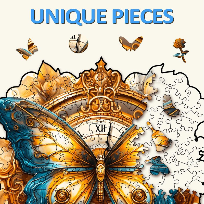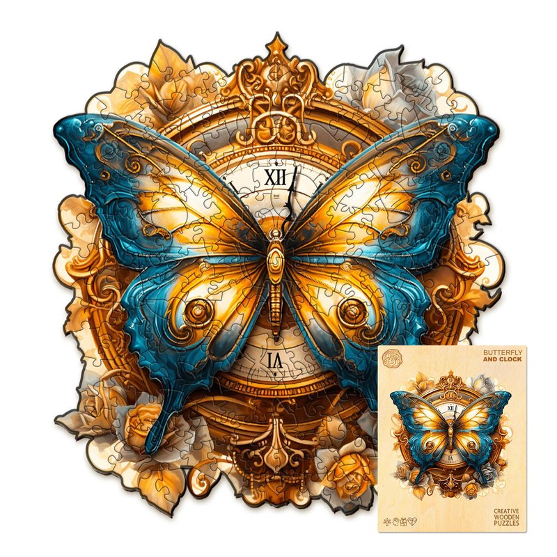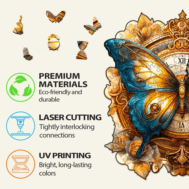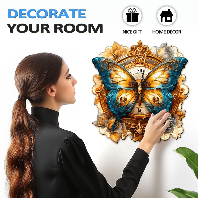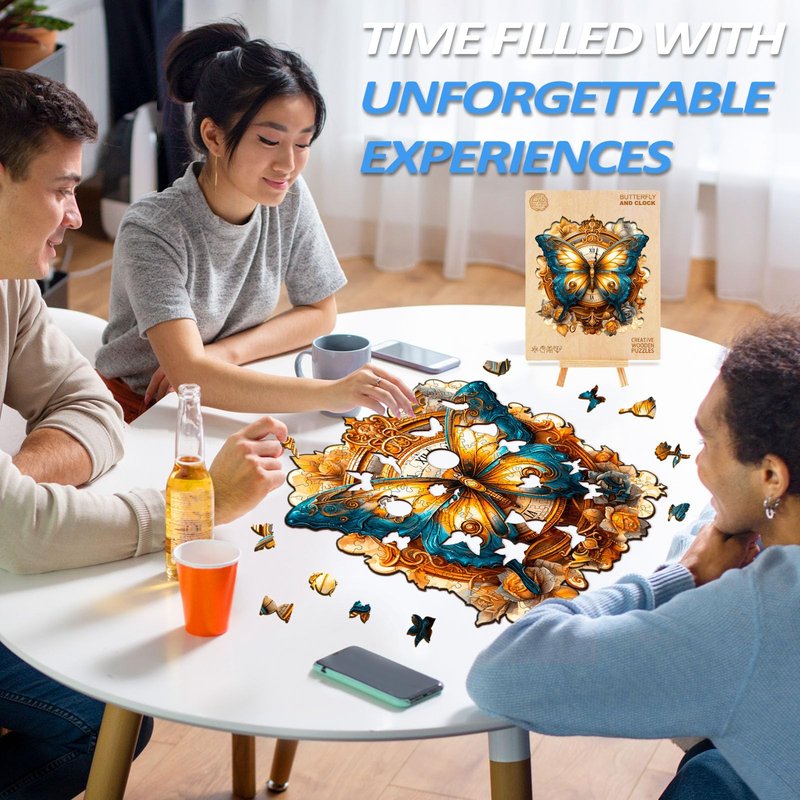 Wooden Puzzles for Adults, 300 Pieces Adult Puzzles, Unique Clock Butterfly Puzzles Gifts for Puzzle Lover, Wooden Puzzle Games (L-13.4 * 12.5in)