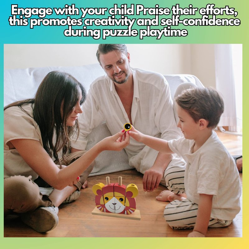 Wooden Puzzles for Kids Montessori Building Blocks - Learning Educational Preschool Toys, 3D Animal Stacking Puzzles for Toddlers 3,4, 5, 6 Year Old Boys & Girls (Lion Red)