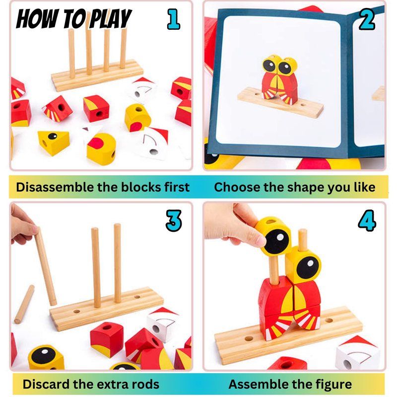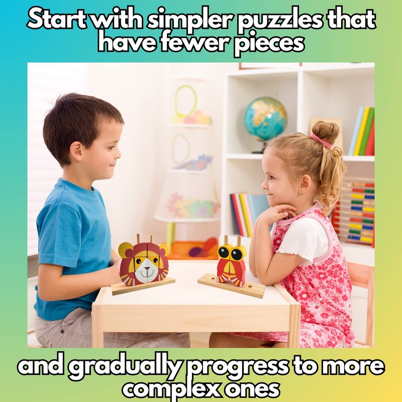 - A NEW CHALLENGE EVERYDAY! - Unlike other wooden puzzles, the pieces are three-dimensional and can be stacked on a peg to create different shapes and animal figures, making them more versatile and interactive. It is like having a new puzzle each day!