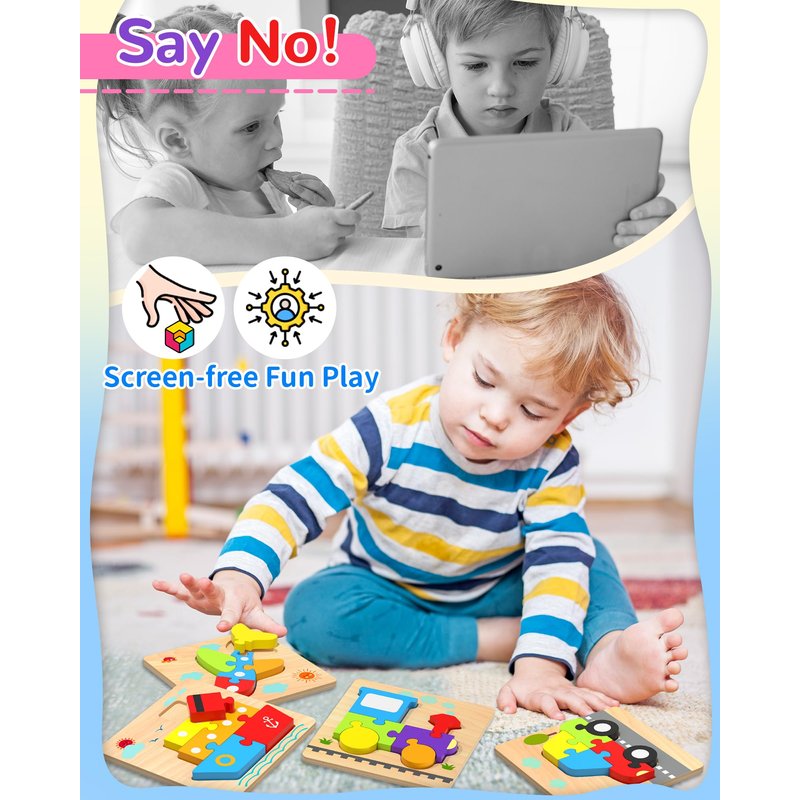 - SAFE AND WELL-MADE: Made with high quality, non-toxic wood materail, this learning toys can last for years. The storage box provided is easy to collect store and carry after playing. The edges of wooden puzzles are smooth , it keeps your 1 2 3 years old plus boys and girls play safely.