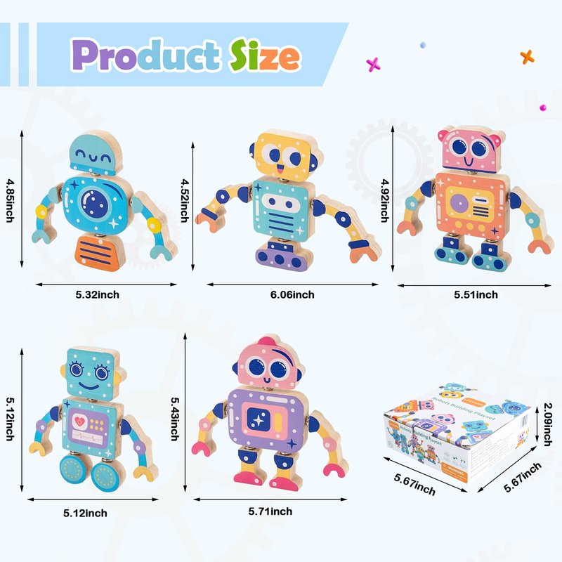 - 【Lasting and Safe to Use】These robot blocks are made from solid wood with smoothed surfaces and rounded corners, ensuring they are 100% safe for kids to play with.Lasting and vibrant water-based paint has no harmful substances and won’t be weathered easily, also they are super easy to clean
