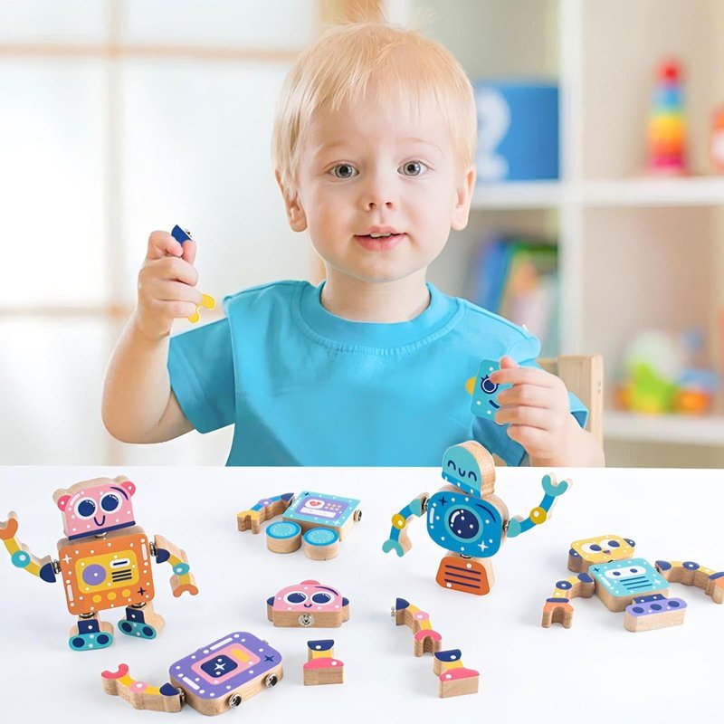 Wooden Snap-Together Building Toys, Robot Building Kit for Kids,STEM Building Blocks,Take Apart Playset 28pcs, Fine Motor Skill Montessori Educational Learning Toys Gift for 3 4 5 6 Years Kids