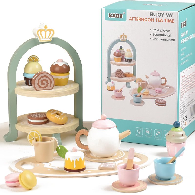 - Host the Perfect Tea Party with Our Charming Wooden Tea Set! Delight your little one with this enchanting Wooden Tea Set with Cupcake Stand & Food. Designed to inspire hours of imaginative play, this beautifully crafted set is perfect for hosting the perfect tea party, whether alone or with friends.
