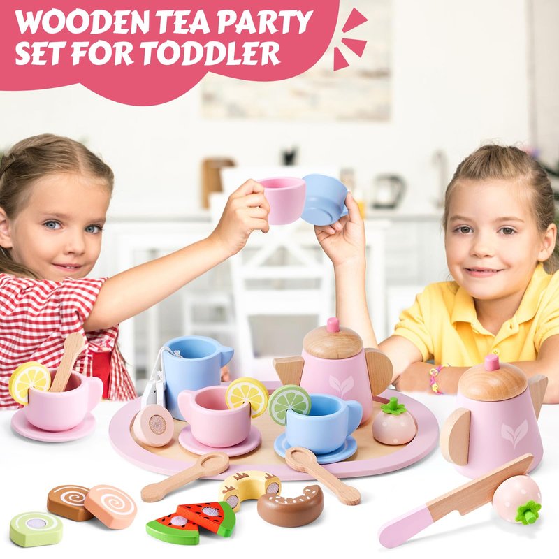 - 【Perfect Tea Set Toy Gift】: This toddler tea party set and wooden food toy is a perfect gift for almost all children, suitable for holidays, birthdays, Christmas, or any occasion. Play tea sets for kids ages 4-8 is a great way to encourage your child's creativity and imagination while also promoting their social and cognitive development.