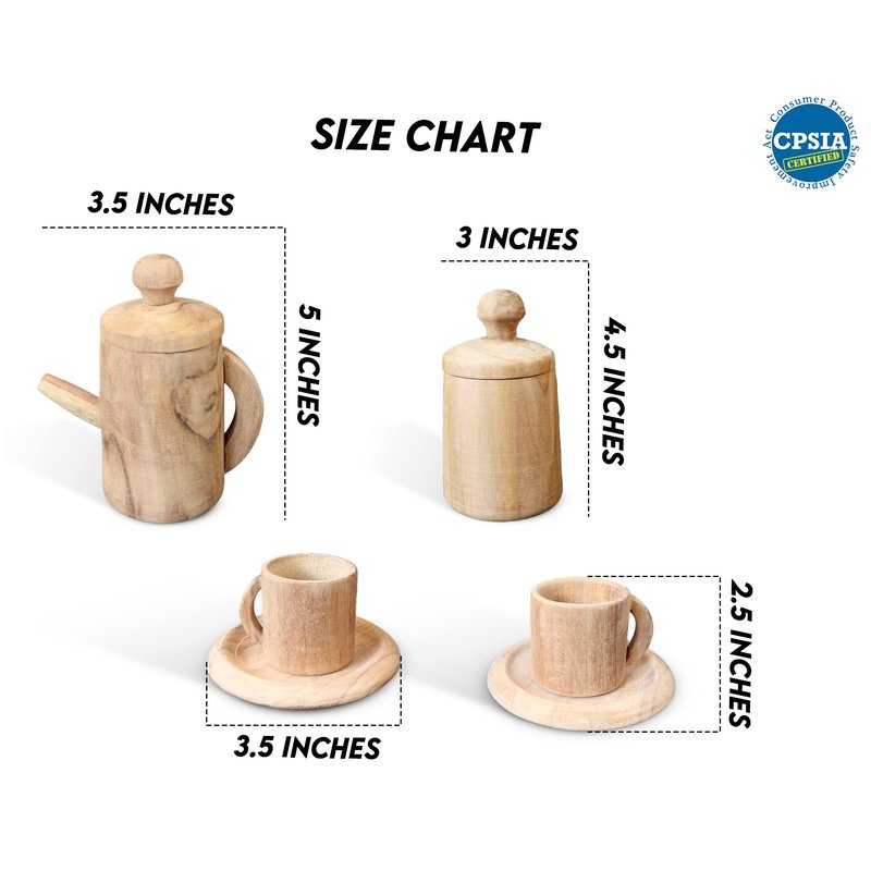 Wooden Tea Set for Kids – Tea Party Set for Toddlers – Kitchen Tableware Play Set – Perfect Kids Garden Tool Kits – Pretend Play Wooden Sets – Play Room Gifts