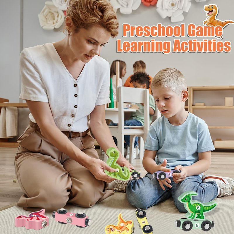 - 11PCS Magnetic Dinosaur Toy Train Set: Our magnetic wooden train toy set includes 1 locomotive (with the number 0) and 10 train carriages (with the numbers 1-10), with 11 different styles of dinosaur patterns printed on both sides in 11 different colors. It will be very popular among children who like dinosaurs. Our train set provides novel matching gameplay ideas to help children learn mathematics, shapes, and colors while improving children's cognitive ability and problem-solving abilities