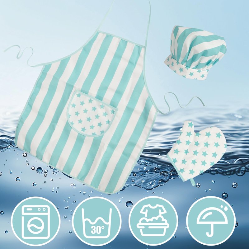 - Premium Material: Crafted from waterproof polyester fabric, this set is not only soft and lightweight but also wear-resistant and durable. The waterproof feature of both the apron and chef hat ensures that children can fully focus on their cooking adventures without worrying about staining their clothes.