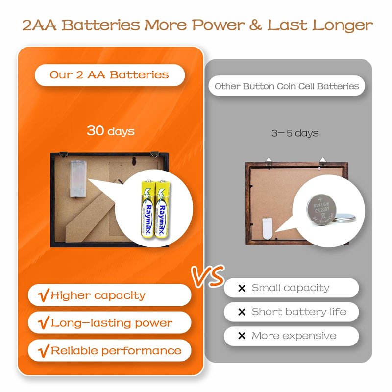 - Easy to Use & Built in Picture Frame. This pretty shadow box is powered by 2 AA batteries (Included), it can stand on it's own on a tabletop, and has 2 hanging hooks installed on the back for easy wall mounting. To light up the shadow box, simply switch it on, while switch it off when not in use. When the AA batteries run down, they could be easily replaced. Features 4x6 inch built-in picture frame, you could put your favorite picture of the loved one on.