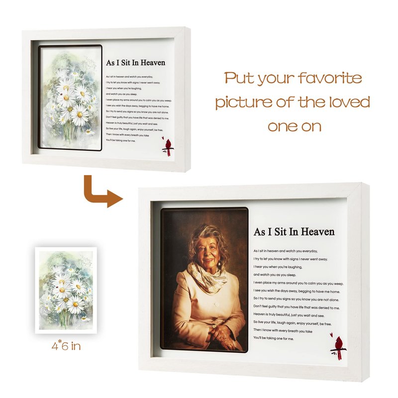 WOODEXPE Sympathy Gift LED Memorial Shadow Box Memorial Picture Frame for Loss of Loved One 4x6 Photo (As I Sit in Heaven White)
