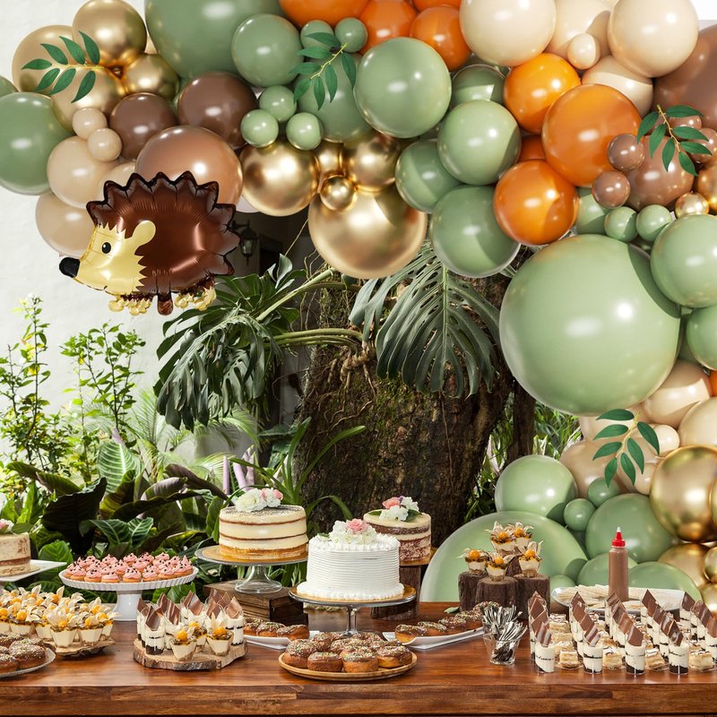 - Package Include: You will get a 148pcs balloon garland kit include 32 sage green balloons 30pcs apricot balloons, 32pcs brown balloons, 20pcs chrome gold balloons, 30pcs orange balloons, 4pcs woodland animal foil balloons, these will bring you a joyful atmosphere to your birthday party