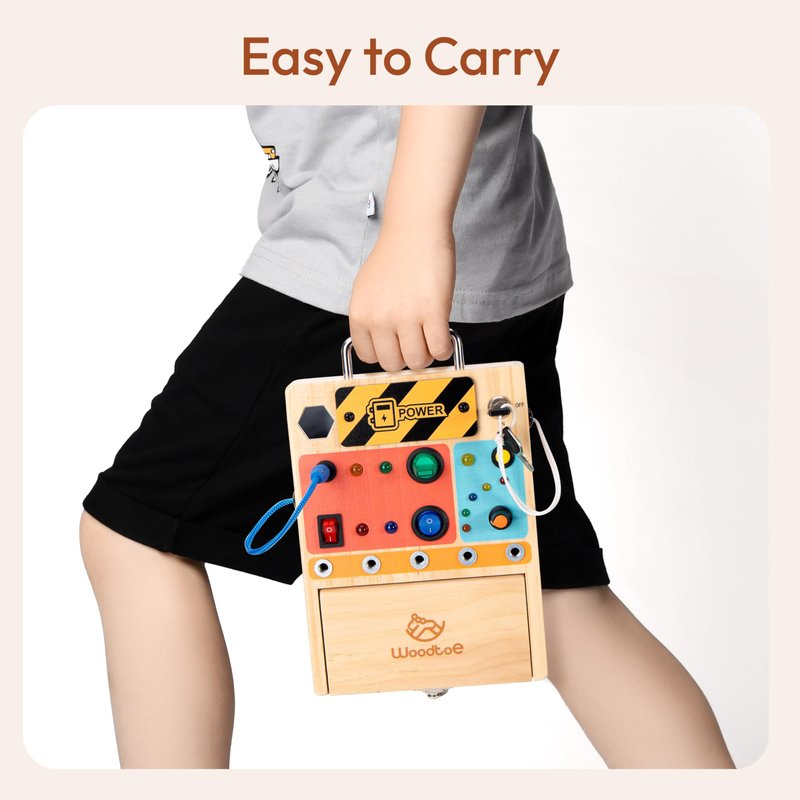 - Easy to Carry: This busy board with LED light is designed with storage space that can hold all the accessories, making it easy to carry. Children can easily play whether at home, school, or while traveling, keeping them busy