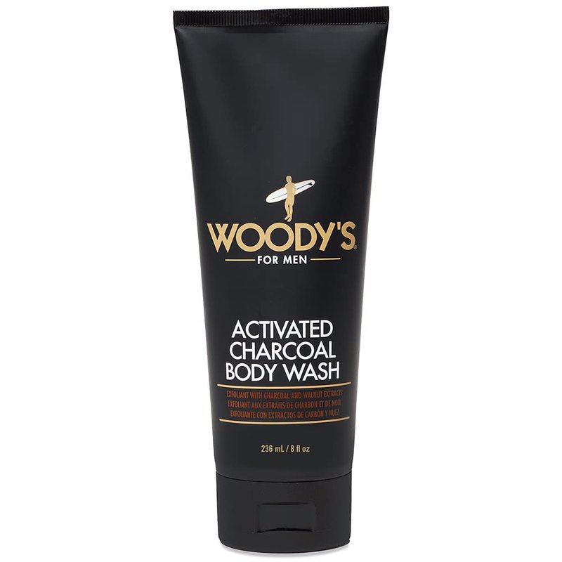 Woody's Detoxifying Activated Charcoal Body Wash with Walnut Extracts, Exfoliating Formula, Deep Clean, 8 Fl Oz