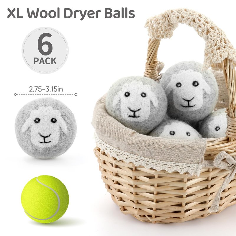 Wool Dryer Balls 6 Pack XL, Natural Fabric Softener Premium New Zealand Wool, Dryer Balls Laundry Reusable, Reduces Clothing Wrinkles & Saves Drying Time, Wool Balls for Dryer, Laundry Balls for Dryer