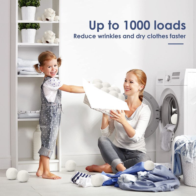 - 🎄【PERFECT FOR CUTTING DOWN DRYING TIME & MONEY】 New zealand wool dryer balls can decrease drying time up to 20%-40%,save money and energy.Reusable 1000+ loads,build the environment more healthier. If you load small or medium laundry, you can place 3-4 balls, if you load large loads, you can place 5-6 balls for better use. We suggest do not dry great big loads of laundry at one time.