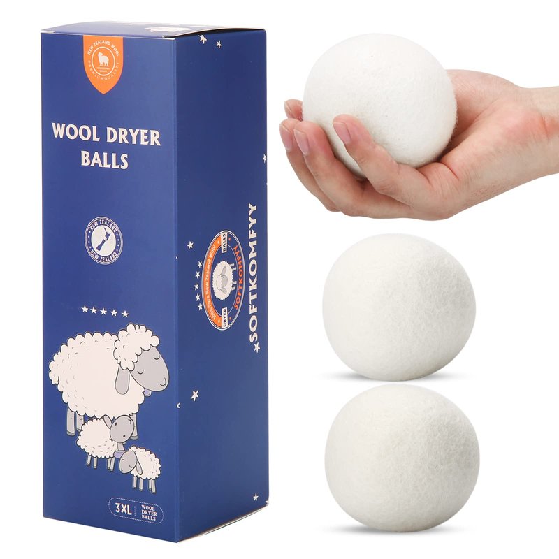 - 🎄【LIVE IN A GREEN LIFESTYLE】Softkomfyy wool dryer balls are made of premium 100% New Zealand wool.There are white 3 XL wool dryer balls in a lovely paper box and larger than a tennis ball.Toss the wool dryer balls in to the dryer you will be surprised at how effective these natural laundry balls are and will make your clothes more fluffy and soft.