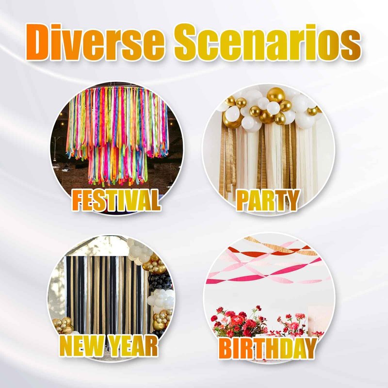 - Party Crepe Streamer:Suitable for party decoration, wedding, birthdays, bridal shower, baby shower,anniversary,Class Gathering, Family Gathering, Valentine’s Day, Mother' Day, graduation party supplies balloons,With Photo Booth Backdrop Decorations