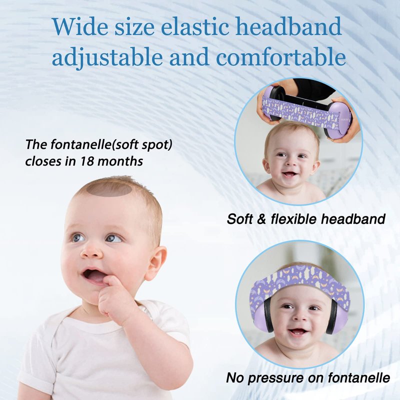 WORCBGIO Infant Ear Protection Noise Cancelling Baby Ear Muffs, Toddler Hearing Protection with Adjustable Elastic Headband (Moon,Purple