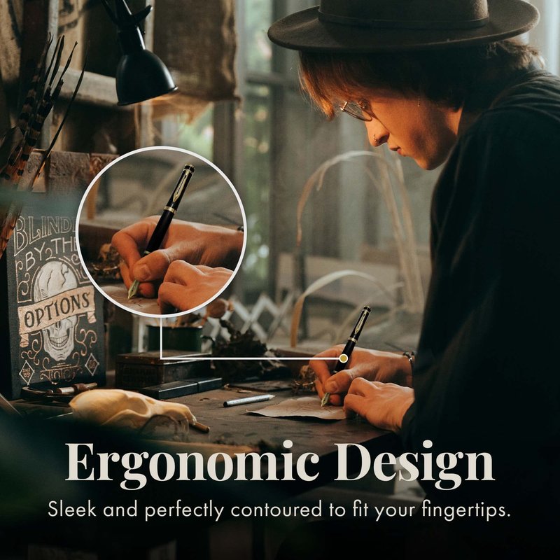 Unmatched Design: the ergonomically-shaped and balanced fountain pens will feel amazing in your hands, which in turn will make hand-lettering, calligraphy or note taking easier and more comfortable – without hand fatigue or cramping. Our fountain pen erudite collection offers smooth and easy ink flow and has great character as well as elegant ink variation as you refine your strokes to find the pressure and feel that works best for you.