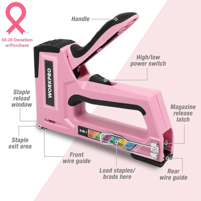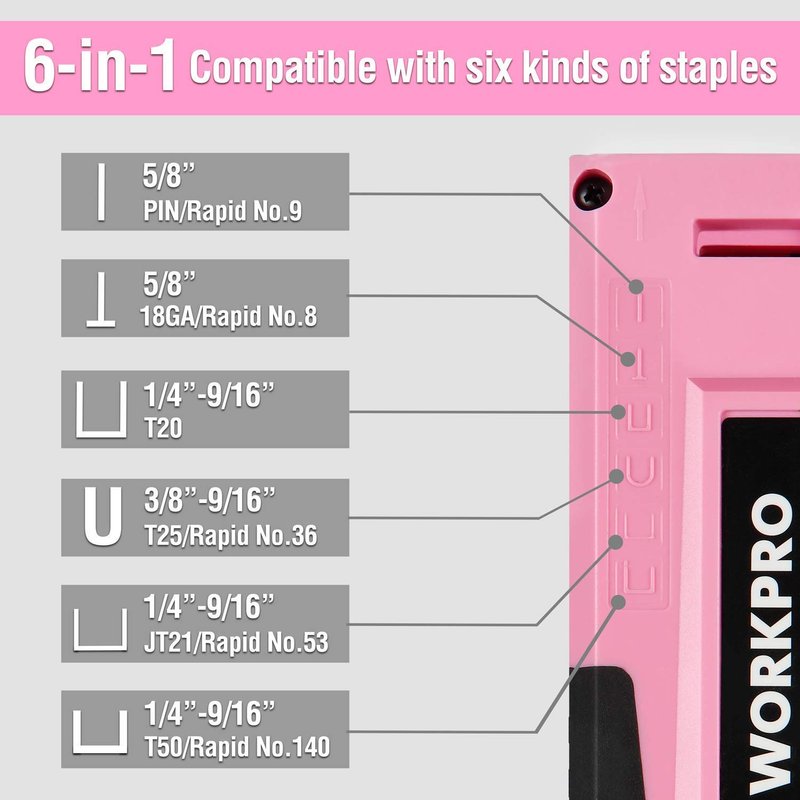 Workpro 6 IN 1 Heavy Duty Staple Gun, Pink