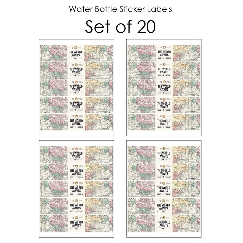 World Awaits - Travel Themed Party Water Bottle Sticker Labels - Set of 20