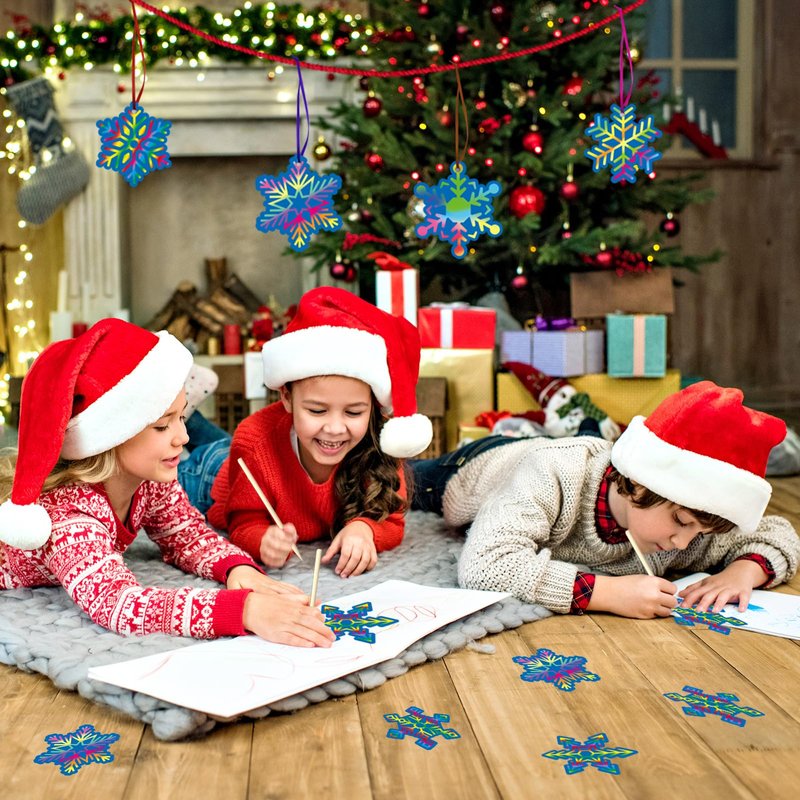 - Easy to Use: Our snowflakes scratch paper are made of scratch cardstock with wood scratch tools , safe for children. Choose your favorite shape, and then use the wooden stick to scratch out patterns gently, use the ribbons to hang on trees, door, windows for Christmas decor