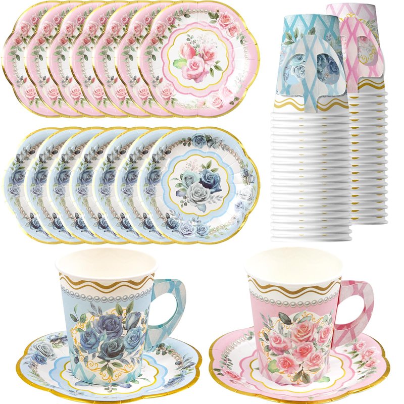 - Package Includes: 24 floral paper tea cups in 9 oz and 24 sauces in 5.7 inches; 2 styles