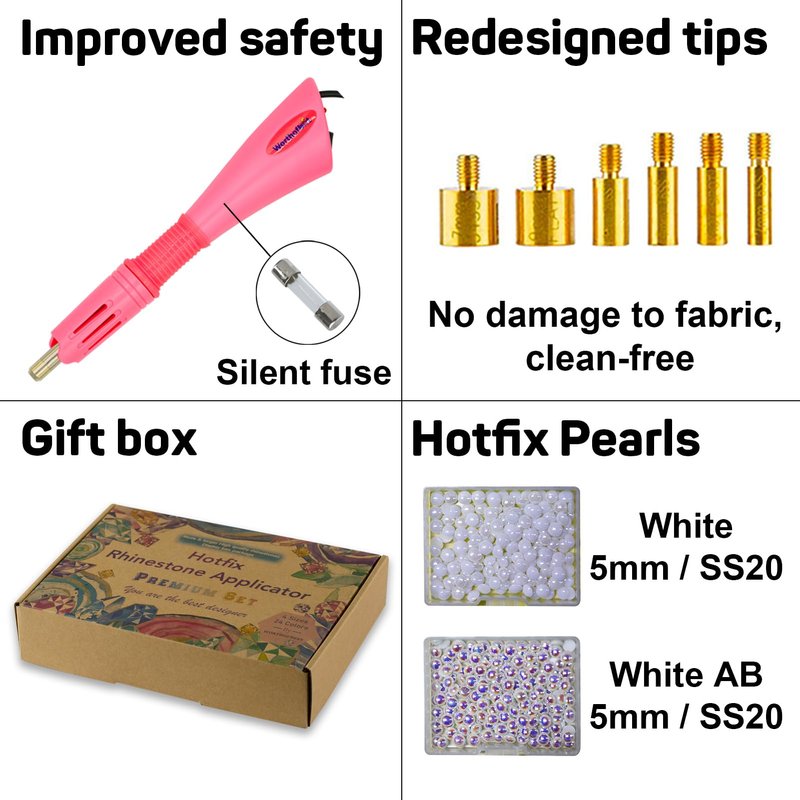 - Versatile Adhesion: The hotfix applicator is designed to adhere hotfix rhinestones & Pearls to various materials such as fabric, wood, cardstock, and soft real leather, providing a wide range of creative possibilities.